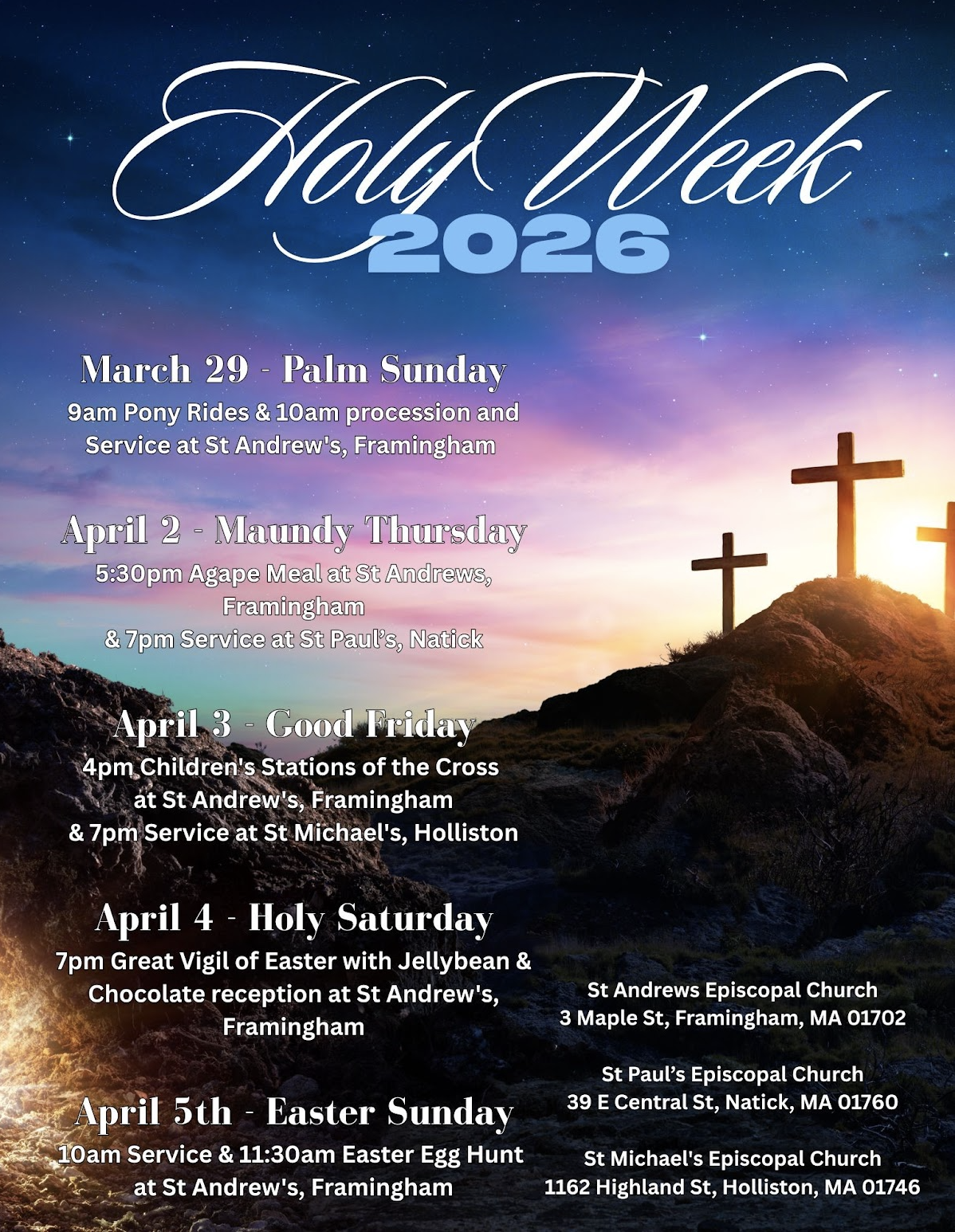 8:00 p.m. Wednesday, Order of Compline via Zoom. (Zoom link found in weekly e-news)